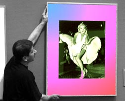 Un trabajador del Museo de Historia de la Fotografía, en Alemania, coloca la famosa imagen de Marilyn Monroe tomada por Matty Zimmermann en septiembre de 1954, en Nueva York, como parte de la exposición Momentos del siglo, que se inaugurará mañana n Foto: Ap