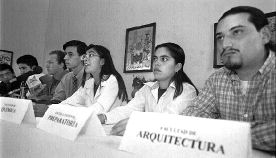 Representantes de diez facultades y escuelas informaron sobre el estado del conflicto estudiantil. Asistieron Tlalla Islas (Química), Lourdes Vizarro (Escuela Nacional Preparatoria) y Arturo Aguilar (Arquitectura), entre otros n Foto: Cristina Rodríguez