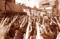 Vallejo es espectador del mundo de los muertos. ``Lo único seguro en esta tierra es la muerte'': los hombres son sombras perdidas en las multitudes, seres invisibles, anónimos, sin pasado ni futuro. Las acciones ocurren en el recuerdo, la alucinación o el sueño. Como en el infierno dantesco, se encuentran personajes de distintos planos de la realidad: el padre Misael Pastrana, exorcista que trocó a poseso; el doctor Darío Arizmendi, gobernador de Antioquia; Salinas de Gortari, un demonio menor; el padre Eslovez, esbirro de la secta de Juan Bosco; Hermelinda, la antipapista; Zabludovsky, un extraterrestre, un engendro de la televisión; Echeverría, quien bombardeó, desde los aterrados cielos, a los estudiantes.