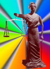 La omnipresencia del discurso criminal es compensada por formas igualmente publicitadas de impartir justicia. En ningún sitio se procesa a tanta gente como en Hollywood. Conocemos de sobra el estrado de caoba donde un juez de quijada recia blande un martillo, donde los testigos juran sobre la Biblia y doce honestos hombres del jurado sufren con sus testimonios, donde a cada rato la defensa grita ``¡protesto, su señoría!'' y el público murmura con asombrado regocijo hasta que el juez amenaza con desalojar la sala.