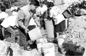 la poca agua que les fue repartida mediante pipas