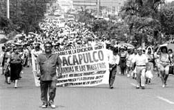 Profesores de Acapulco marcharon en el puerto para protestar por la represión policiaca contra mentores en el Distrito Federal n Foto: J. Guadalupe Pérez
