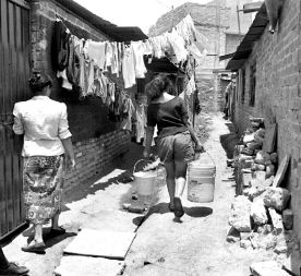 Habitantes de la colonia Hornos acarrean agua para almacenarla, pues sólo les surten dos veces por semana debido a la falta de tuberías n Foto: Carlos Mamahua