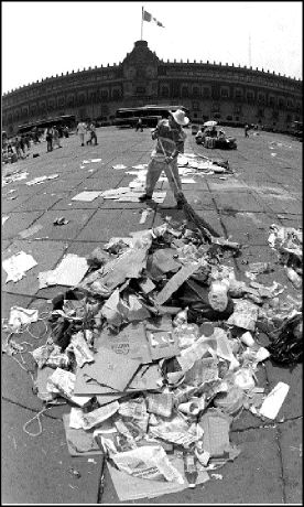 Trabajadores del Gobierno capitalino asean el Zócalo después de que se retiró un contingente de maestros que estaban en plantón n Foto: José Antonio López