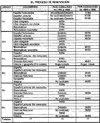 En 1992, el Acuerdo Nacional para la Modernización de la Educación Básica dio pie para poner en marcha del Programa de Renovación de Libros de Texto Gratuitos. En el Programa del Sector Educativo para 1999 se anuncia la próxima conclusión de este programa, que ha destacado tanto por la cantidad de libros producidos como por la calidad de su edición. Tras siete años de sustitución paulatina de los libros, la educación primaria contará con 33 volúmenes nuevos (ver cuadro anexo) destinados a los alumnos, incluyendo una monografía para cada entidad federativa. Además, se produjeron los correspondientes libros para maestros, los Atlas de México y universal, y los libros Conoce Nuestra Constitución y Temas de educación sexual. Es tiempo de ensayar una revisión del proceso de renovación.