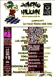 Sekta Core, Panteón Rococó, Salón Victoria, La Matatena, Nana Pancha, La Tremenda Korte, La Zotehuela, La Medias de la Abuela y Sociedad Stuka, del Distrito Federal; Cabrito Vudú, El Inspector y Ruido Norte, de Monterrey; Inadaptados, de Guadalajara; Tokadiscos, de Ensenada; Rikita Banana, de Mérida; Reciclados, de San Luis Potosí; Chencha Berrinche, de Los Angeles, y Palmeras Kaníbales, de Venezuela, son las 18 bandas de ska que harán los horrores en el Skándalo Nacional y subirán los decibeles en el Salón 21 (Molière, esquina Andrómaco, Polanco, cerca de la estación del Metro San Joaquín), este sábado 12 de junio; las puertas se abren a las 11:00 horas, la preventa es de 60 pesos y el día del evento 70. Con este amplio cartel, este concierto múltiple promete estar de verdadero agasajo; imperdible para todo buen skato que se precie de serlo.