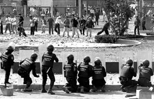 Con petardos, bombas molotov, piedras y