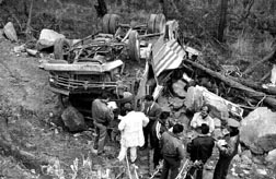 Al volcarse el microbús en el que viajaban hacia Chalco integrantes de la banda musical Los Hernández, cuatro personas murieron y 19 resultaron lesionadas n Foto: Carlos Mamahua
