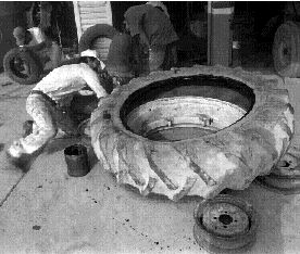 Reparando una llanta de tractor en Ojo Caliente, Zacatecas * Foto: Pedro Valtierra