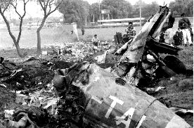 Restos de la aeronave que se estrelló contra una barda en la parte trasera del aeropuerto internacional de Toluca * Foto: José Carlo González