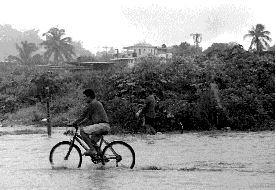 Las lluvias han impuesto una nueva moda: la bicinavegación * Foto: J. Guadalupe Pérez