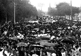 La marcha convocada por el Consejo General de Huelga, a su paso por el Paseo de la Reforma * Foto: Francisco Olvera