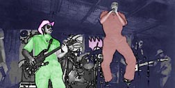 -Ese pinche gordo nos odia, está ardido porque está bien feo y nuestra baterista está bien buena. La otra vez en el Alicia no le quiso prestar la batería a nuestra rubia, que con su curso de dos semanas que tomó ya lo supera. Tocamos y ensayamos diario, el virtuosismo me vale madre, porque muchos de los grupos que a mí me gustan no son muy técnicos. En las tocadas de Intestino Grueso se arman los slam dance, nos aventaron tomates y la gente se vuelve loca y otra vez en halloween tocamos tirados en el piso como muertos y no prendió, por eso no me creo mucha expectativas con el grupo. Además, yo cuando toco me la paso bien chingón, la actitud de mi grupo es muy punk, muy al chile, no nos sentamos o hacemos juntas para ver cómo nos vemos; algunas veces nos vestimos de carniceros y qué divertido y va. Me gusta hacer música para que la gente se la pase bien; ni mi grupo ni lo que hago forman parte de ningún movimiento, es sólo rock and roll, no hacemos música que tuvo o tendrá auge.
