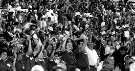 Miles de deudores exigieron ayer la condonación de préstamos bancarios a jubilados, campesinos empobrecidos y a quienes han padecido siniestros * Foto: María Luisa Severiano