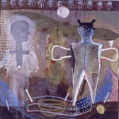 -No sabría decirlo, pero creo que si en algo coincido con la mayoría de mis paisanos es en el interés por la figuración, pues es algo que comúnmente llevamos dentro, por educación. En mi caso, veo que poco a poco he tendido a desligarme de ese universo plenamente figurativo y he tratado de integrar elementos abstractos que justamente enriquezcan mis figuras en otra dimensión. Más que narrativa, mi pintura intenta ser simbólica. Como se puede constatar en esta muestra que es una síntesis de mis últimas tres exposiciones en México en la Casa Lamm (1994, 1997 y 1998), mi interés por la figura humana ha sido una constante, algo así como el hilo conductor de mi lenguaje pictórico, sóloÊque ahora pretendo descontextualizarla. Para ello me he propuesto hacer una especie de resumen de todo mi bagaje artístico y depurar mi lenguaje. Esto significa que no por querer decir muchas cosas hay que atiborrar el espacio. Al contrario, ahora siento la necesidad de decantar mi vocabulario: conseguir mayor expresividad con menos elementos. Eliminar lo superfluo. Pienso que esto es un trabajo que me va a llevar toda la vidaÉ