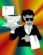 El personaje en cuestión suspira con alivio; todo parece sencillo y expedito hasta que desvía la vista y descubre...¡¡¡al Hombre de los Lavabos!!! ¿Quién inventó a ese incierto testigo de nuestra vida privada? ¿En qué momento la gastronomía mexicana consideró que era ``de lujo'' tener a un mendigo uniformado en los urinarios?
