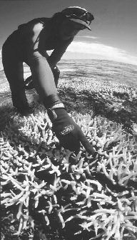 Partes de la Gran Barrera de Arrecife, en Australia, se encuentran dañadas en la actualidad y probablemente serán afectadas por el calentamiento global de la Tierra, ya que éste devastará los arrecifes de coral del mundo en el nuevo milenio y podría eliminarlos de la mayoría de las áreas del planeta para el año 2100. De acuerdo con un reporte del Instituto de Investigación de Arrecifes de Coral de la Universidad de Sydney, el blanqueamiento de esta especie alrededor del orbe se incrementará en frecuencia y severidad, a menos que el calentamiento pueda revertirse * Foto: Greenpeace/Reuters
