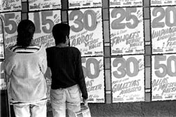Revisión de las ofertas a la entrada de un centro comercial n Foto: José Carlo González