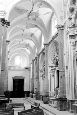 entrañable edificio de la ciudad de Puebla. Miembros del equipo de arquitectos, ingenieros y restauradores que han conseguido corregir los grados más peligrosos de desnivel de la Catedral Metropolitana realizaron varias visitas a los edificios históricos más dañados en Puebla por el temblor del 15 de junio. El 25 de ese mismo mes visitaron colectivamente el templo de La Compañía, y estudiaron inicial pero cuidadosamente la situación provocado por el sismo. Aquí presentamos las conclusiones más relevantes de esa visita, a las que arribaron en una reunión evaluatoria celebrada en la ciudad de México, y que expresaron en un documento entregado a las autoridades encargadas de la reconstrucción bajo el título de "Inspección geotécnica preliminar del templo de La Compañía y el edificio Carolino". Agregamos algunos juicios particulares expresadas por ellos durante los recorridos. Según consta en el documento mencionado, este equipo de expertos está conformado de la siguiente manera: lo encabeza el arquitecto Sergio Zaldívar, director de Proyectos Especiales del Consejo Nacional para la Cultura y las Artes (Conaculta); el doctor en ingeniería Efraín Ovando y el ingeniero Roberto Sánchez, del Instituto de Ingeniería de la UNAM; el ingeniero Hilario Prieto, de la empresa HP Constructores y especialista en andamiajes y apuntalamientos de gran complejidad; el doctor Enrique Tamez, director de la empresa TGC, y los ingenieros Enrique Santoyo, José Antonio Segovia y Mario Trigo, de esta misma empresa, la que además de Catedral ha corregido daños estructurales de media docena de edificios históricos y unos 60 de carácter civil en la ciudad de México. La semana pasada se celebró en la ciudad de Pisa, Italia, un encuentro internacional para celebrar que la milenaria y famosa torre de aquella entidad finalmente ha podido revertir la inclinación excesiva que estaba a punto de hacerla caer. Esto ha sido posible gracias a la técnica desarrollada por estos especialistas, técnica a la que los italianos llaman la "fiesta mexicana". Zaldivar y Santoyo se encuentran en estos momentos en aquella celebración. DIAGNOSTICO: El cuerpo del templo, de forma basilical, está fragmentado en muchos puntos de carga y se apoya en el muro norte, que a su vez está desplazado hacia la calle Juan de Palafox. "En el muro exterior las pilastras muestran signos de haber sufrido asentamientos del orden de 1 centímetro... giraron y se inclinaron aproximadamente 0.5 por ciento; además, dos de ellas se desplazaron horizontalmente unos seis milímetros, lo cual, dada la altura del muro norte, implica por lo menos siete centímetros de desajuste en la clave del arco, al que se deberá sumar el asociado con el hundimiento antes mencionado. "En la nave se aprecian fisuras en el arranque de