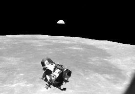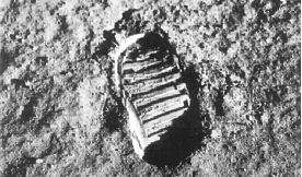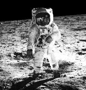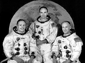 Imágenes que impactaron al ser humano el 16 de julio de 1969, con el primer lanzamiento de una tripulación estadunidense ųMichael Collins, comandante del Saturno V (al centro)ų a la Luna, y cuatro días después con la llegada a ese cuerpo celeste de Neil Armstrong (izquierda) y Edward F. Aldrin (derecha) en el módulo Eagle. La primera huella impresa en el suelo lunar y las caminatas de los astronautas sobre la superficie fueron captadas con una cámara de 70 milímetros * Foto: NASA-Reuters