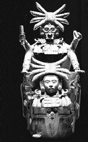 ición porque también comprende los diferentes ritos como el sacrificio, el juego de pelota y aquellos funerarios, todo lo que es la religión maya. Igual que en ''Tejido social", vuelven a aparecer figurillas de la isla de Jaina, Campeche, como la pequeña figura antropomorfa ''tal vez de un dios naciendo de una flor". Otra vasija muestra a un anciano saliendo de un caracol. Bueno, hasta hay un hueso humano tallado en bajorrelieve con cuatro figuras.