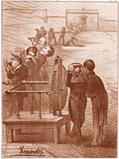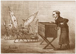 Al extinguirse las cortes, la caricatura heredó del bufón su carácter conscientemente irracional. Es libre como las asociaciones de ideas de un sueño o una pesadilla; es un acto de locura voluntaria. Las imágenes distorsionadas de los dibujos satíricos lindan con lo absurdo. Y al ser tan incontestables como un acto de locura, no admiten discusión. Esto explica que en 1832 Louis Phillipe, el Rey Ciudadano, al sentirse agraviado por unos grabados de Daumier, lo mandara encerrar no en una cárcel sino en un asilo para lunáticos. Para el gobernante, los dibujos de Daumier no desafiaban las leyes de Francia sino las de la razón, y en particular las de la razón de Estado.