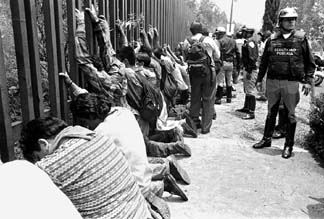 Agentes de la SSP vigilan a los detenidos en