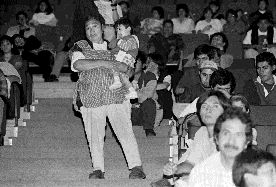 En el parque Balboa de San Diego, California, Adrián Sánchez da su testimonio frente a su familia sobre cómo lo detuvieron cuando regresaba de México y lo encerraron cinco meses en el Centro de Detención de San Pedro, debido a una falta cometida hace nueve años y por la cual ya había sido sentenciado * Foto: Elsa Medina