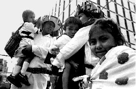 Los tres niños tzotziles sobrevivientes de la masacre de Acteal causaron expectación a las afueras de la embajada estadunidense Ť Foto: José Núñez