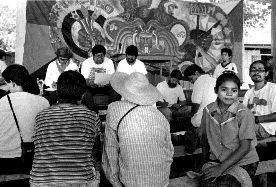 Trabajos en el Encuentro Nacional en Defensa del Patrimonio Cultural, en La Realidad, Chiapas Ť Foto: Frida Hartz