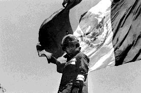 Salida de los jefes zapatistas Tacho y Marcos, después de la clausura del Encuentro Nacional en Defensa del Patrimonio Cultural Ť Foto: Frida Hartz