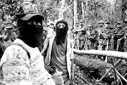 Por dicho camino real, quizás un día de éstos carretera, llegamos caminando los enviados de La Jornada, hasta topar en un promontorio con una guardia de soldados del Ejército federal que nos impidieron el paso. De más adelante, menos de un kilómetro de selva tupida, se escuchaban cientos de voces gritando vivas al EZLM y el subcomandante Marcos.