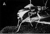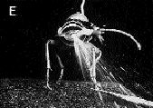 Científicos dieron a conocer estas fotografías de un escarabajo bombardero al expeler un fluido tóxico caliente por la punta de su abdomen. Estos insectos tienen la habilidad de disparar un líquido nocivo hacia cualquier parte del cuerpo para detener a sus enemigos. De acuerdo con investigadores estadunidenses, han desarrollado esta defensa "como una manera de ganar tiempo cuando sufre un ataque". Los escarabajos no pueden volar inmediatamente, pues sus alas tardan en abrirse y ello les puede costar la vida si los atacan Ť Foto: National Academy of Science/Reuters