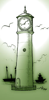 Bueno, no era nada de eso. Estaban los barcos, y ellos dependían del faro. Sus mástiles estaban a nuestro nivel. Las gaviotas cruzaban por las ventanas a cada lado. Afuera del puerto estaba el Canal de Bristol, y en el lado opuesto, apenas visible, a unas treinta millas de distancia, la costa de Sommerset como un banco de nubes. A nuestra espalda estaba el pueblo con sus techos de pizarra, y el malecón con sus caminantes que no advertían ser observados desde arriba.