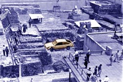 Hoy en día, el centro de la ciudad tiene una zona devastada, el hueco que dejaron las casas coloniales y ahora ocupa un pedregal azteca, expuesto a la lluvia ácida. La solución lógica hubiera sido practicar una restauración subterránea, como la del museo del Louvre, sin destruir la superficie. Pero el presidente necesitaba dinamitar suficientes bienes raíces para equipararse a un virrey español o a un emperador azteca y exclamar, como el protagonista del poema de Jorge Hernández Campos: Yo soy el Excelentísimo Señor Presidente/ de la República General y LicenciadoÊDon Fulano de Tal./ Y cuando la tierra trepida/ y la muchedumbre muge agolpada en el Zócalo/ y grito ¡Viva México!/ por gritar ¡Viva yo!/ y pongo la mano sobre mis testículos/ siento un torrente beodo de vida.
