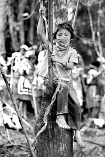 juega durante la marcha indígena en la que se
