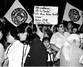 Miembros de El Barzón metropolitano se manifestaron en la Catedral en favor de que la deuda de países pobres sean condonadas Ť Foto: Frida Hartz