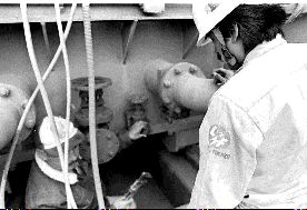 Trabajador en la termoeléctrica Ingeniero Jorge Luque, ubicada en Lechería, Tlalnepantla, estado de México Ť Foto: Francisco Olvera