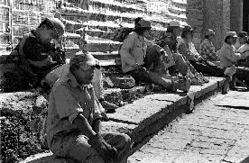 Receso de obreros en el centro de Chalco, estado de México Ť Foto: Frida Hartz