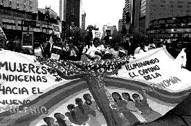 HACIA EL NUEVO MILENIO Marcha de organizaciones indígenas por diversas calles de la capital del país con motivo del 12 de octubre Foto: Frida Hartz |