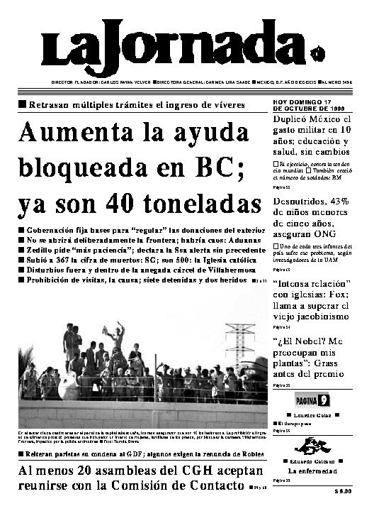 La Jornada, Coordinación de Sistemas Francisco Petrarca 118, Col. Chapultepec Morales, delegación Miguel Hidalgo México D.F. C.P. 11570 Teléfono (525) 262-43-00, FAX (525) 262-43-56 y 262-43-54