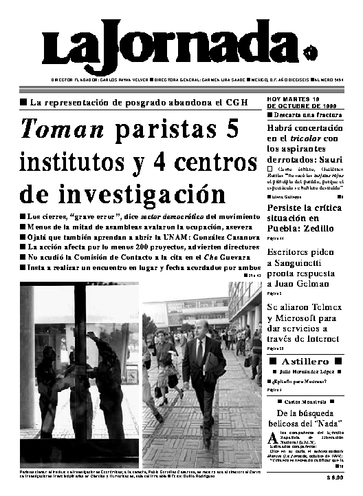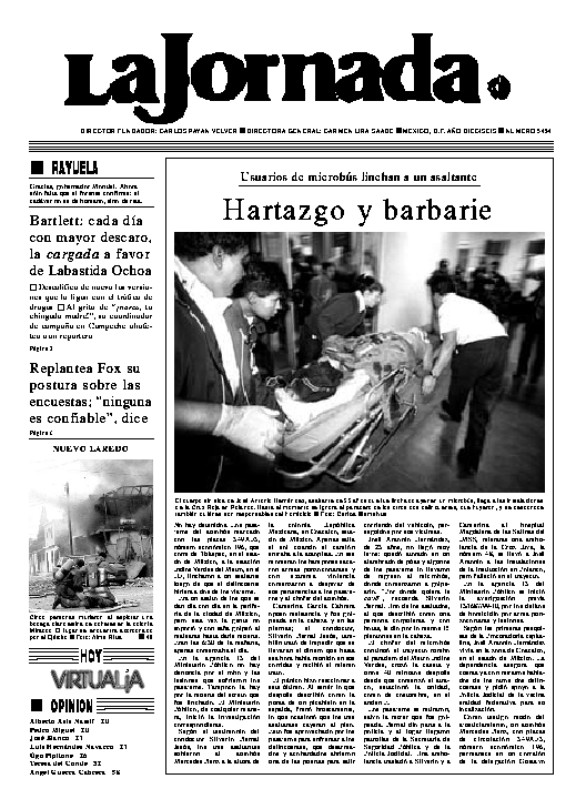 La Jornada, Coordinación de Sistemas Francisco Petrarca 118, Col. Chapultepec Morales, delegación Miguel Hidalgo México D.F. C.P. 11570 Teléfono (525) 262-43-00, FAX (525) 262-43-56 y 262-43-54