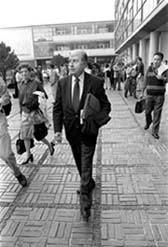 Paristas cierran el Instituto de Investigaciones Económicas; a la derecha, Pablo González Casanova, ex rector y actual director del Centro de Investigaciones Interdisciplinarias en Ciencias y Humanidades, sale del inmueble Ť Fotos: Duilio Rodríguez