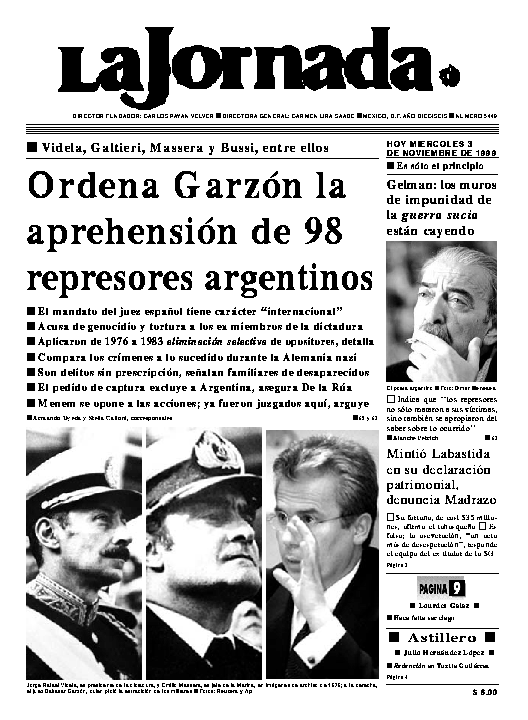 Ordena Garzón la aprehensión de 98 represores argentinos