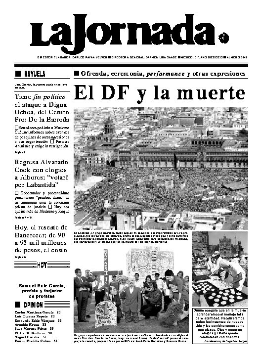 La Jornada, Coordinación de Sistemas Francisco Petrarca 118, Col. Chapultepec Morales, delegación Miguel Hidalgo México D.F. C.P. 11570 Teléfono (525) 262-43-00, FAX (525) 262-43-56 y 262-43-54