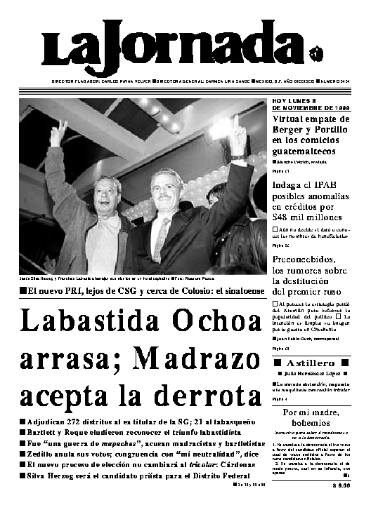 La Jornada, Coordinación de Sistemas Francisco Petrarca 118, Col. Chapultepec Morales, delegación Miguel Hidalgo México D.F. C.P. 11570 Teléfono (525) 262-43-00, FAX (525) 262-43-56 y 262-43-54