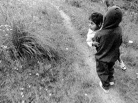 El Porvenir. Niños de la etnia mazahua recorren uno de tantos caminos Ť Foto: Jesús Quintanar