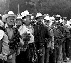 Miembros de la Unión Campesina y Emigrantes Mexicanos (UCEM) marcharon a la SRE en reclamo del monto del fondo de ahorro campesino de los braceros que de 1942 a 1964 trabajaron en Estados Unidos Ť Foto: Guillermo Sologuren SUDOR, EL OTRO INGREDIENTE DEL PAN