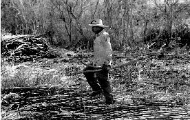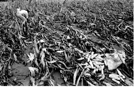 Campesino desesperado intenta rescatar maíz de una parcela arrasada por el agua, en La Colmena, Veracruz Ť Foto: José Núñez