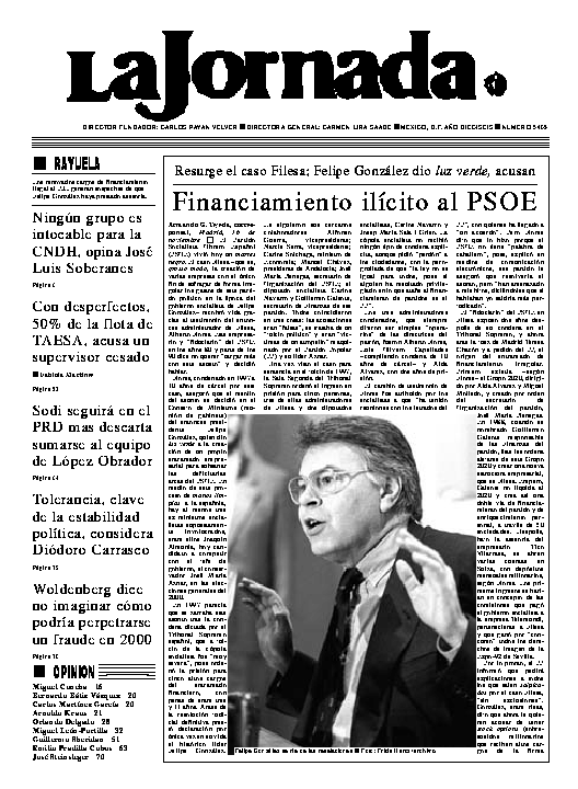 La Jornada, Coordinación de Sistemas Francisco Petrarca 118, Col. Chapultepec Morales, delegación Miguel Hidalgo México D.F. C.P. 11570 Teléfono (525) 262-43-00, FAX (525) 262-43-56 y 262-43-54